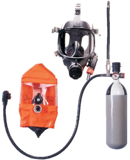The high visibility cuboid hood incorporates an optically clear visor to ensure all round vision. An elastometric neck seal ensures easy donning over spectacles, long or facial hair. A small orinasal mask controls the rebreathed CO2.
