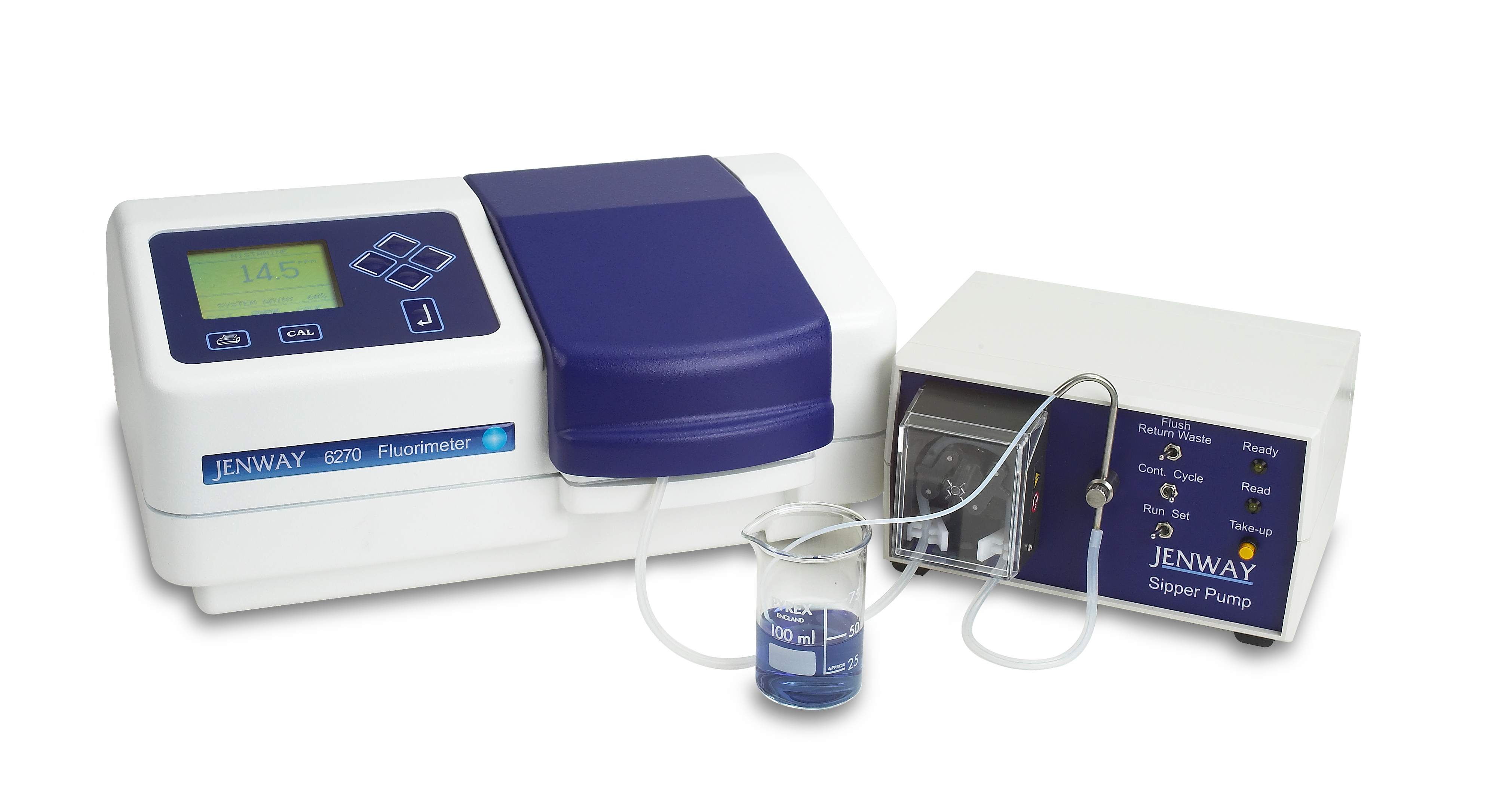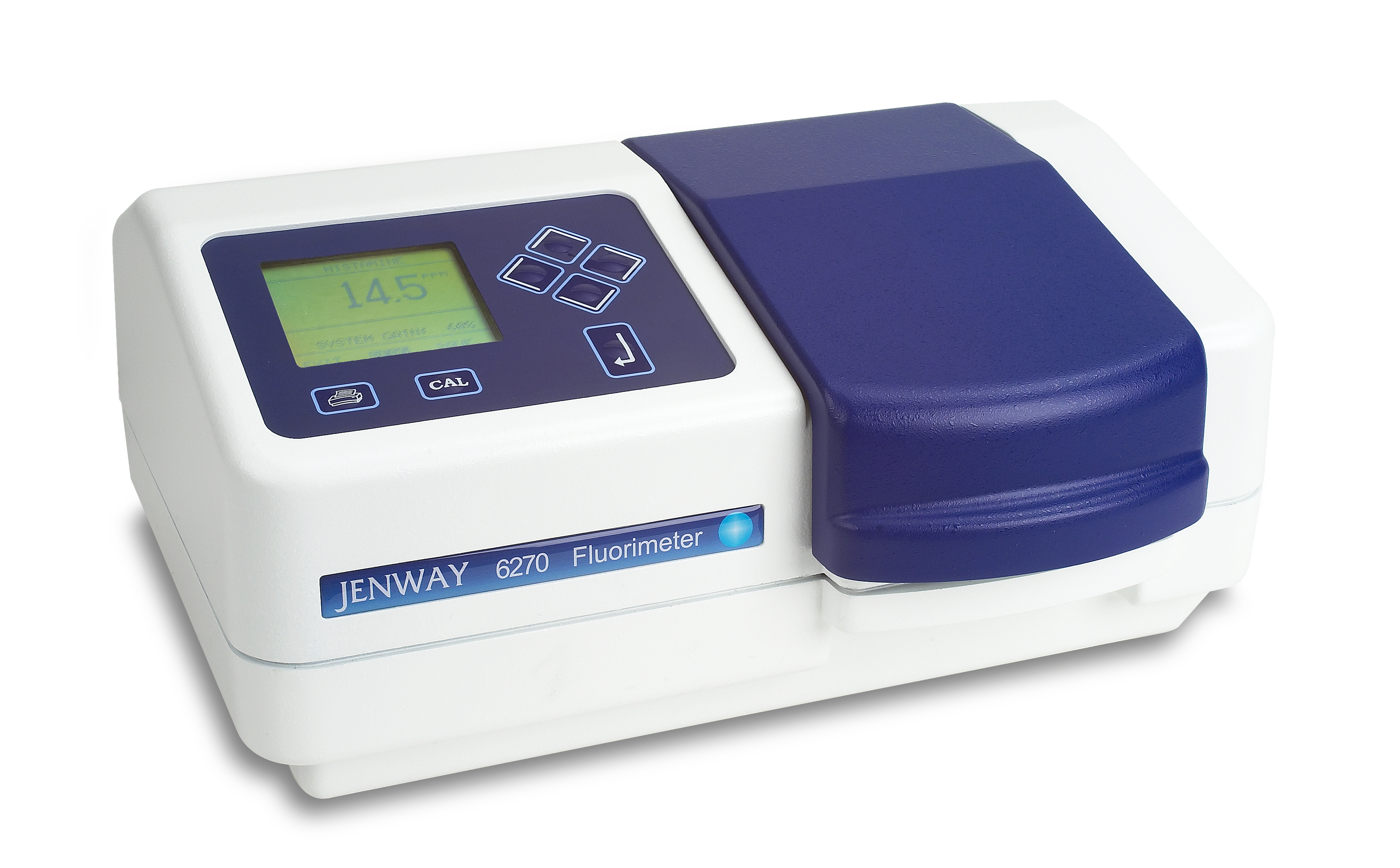 627 001 - Model 6270 Fluorimeter (190-1100nm) supplied with 12V universal power supply with UK, EU and US mains leads, pack 100 disposable cuvettes and operating instructions.