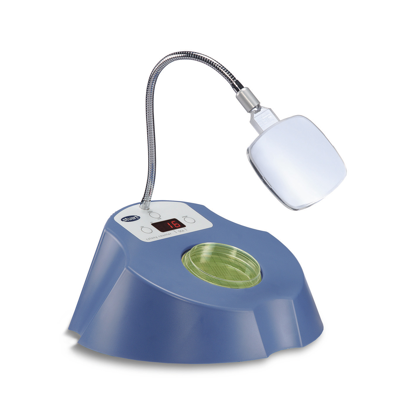 The SC6 colony counter is easy to use. Simply place the Petri dish on