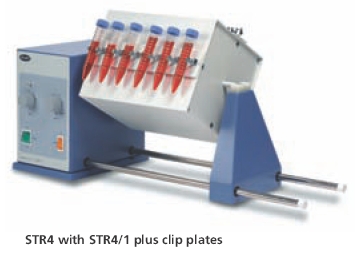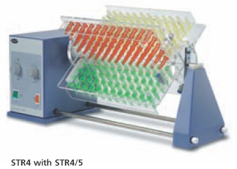 Designed to rotate test-tubes in an end-over-end movement.