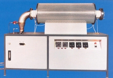 The vacuum system and all controls are housed in the base with one end of the worktube joined to the vacuum system via a stainless steel elbow. Access to the tube is via the other end which is fitted with a removable stainless steel flange. radiation shields are provided for both ends of the furnace to ensure maximum temperature uniformity with minimum loss of pumping speed.